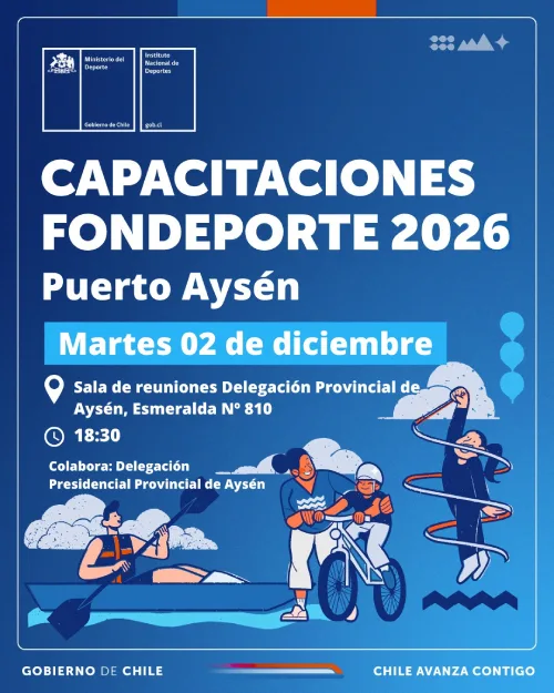 Este martes 02 de diciembre, en la Delegación Provincial de Aysén, se dio inicio a las jornadas de capacitación del concurso público del Fondo Nacional para el Fomento del Deporte Fondeporte 2026 del Instituto Nacional de Deportes.