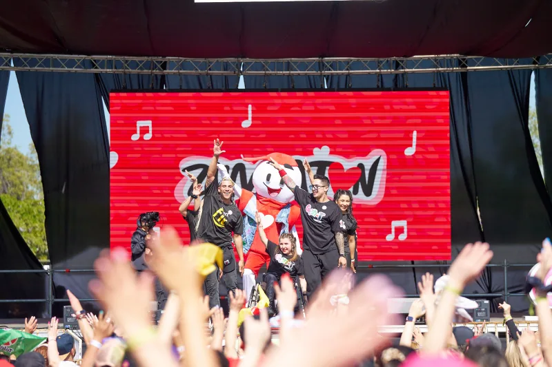 La música en vivo estuvo a cargo de la popular banda de cumbia Amerika’n Sound y de DJ Pablito Pesadilla, quienes hicieron bailar con los éxitos urbanos más destacados del momento. La actividad principal de baile y actividad física fue conducida por Rodrigo Díaz y su staff, quienes, junto al Taller de Ciclodanza de Teletón, guiaron a los asistentes en coreografía inclusiva y llena de energía.