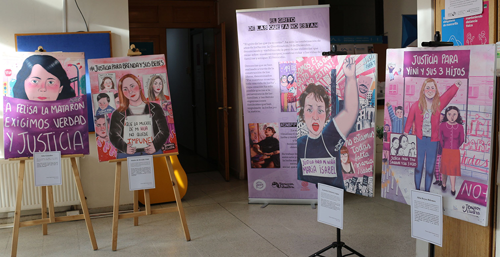 Jeniffer se involucró tempranamente en el activismo-feminismo contra la violencia extrema en la ciudad de Melipilla con un caso que se encuentra relatado en esta muestra que es el de Isidora González o Dorito, la que fue asesinada en la ciudad de Melipilla. Desde siempre a Jeniffer le inspiró la lucha cotidiana de todas las Mujeres, de las pobladoras, de sus vecinas, las Mujeres de su propia familia. Cuando estaba cursando 3°año medio junto a sus amigas salieron a pedir justicia en distintos espacios públicos a raíz del caso Dorito. Posteriormente, ingresó a la coordinadora 19 de diciembre la que está integrada por diversas Mujeres que se encuentran vinculadas en la reparación de violencia extrema, en donde conoce todos estos casos y posteriormente entra a estudiar ilustración. Desde ese espacio, Jeniffer empieza a vincular su oficio de ilustradora con el activismo y la experiencia de conocer la realidad de las madres de las víctimas de femicidio, quienes, dijo la Ilustradora, “no tienen visibilidad en los Medios de Comunicación y no tienen un lugar en la sociedad, así que me pareció súper interesante hacer retratos de madres de víctimas de femicidios”. De esta forma. surgió esta exposición que partió el 08 de marzo y que se ha presentado en muchos lugares de Santiago y en la quinta región en diversas Galerías de Arte, pero la visión de la ilustradora la llevó a buscar salir de las galerías de arte para llevar su trabajo hacia el territorio, con una muestra itinerante, que recorra todo Chile -llegando en esta ocasión al Ministerio de Obras Públicas en la región de Aysén- y que “tenga como principio básico la reflexión y comenzar a hablar de femicidio y de la reparación que necesitan las familias en ese ámbito”, dijo Jeniffer, quien además agregó que “las Madres de femicidio son muy admirables y esto es un pequeño granito de arena en la lucha que están haciendo ellas. Es un homenaje de mi parte”.